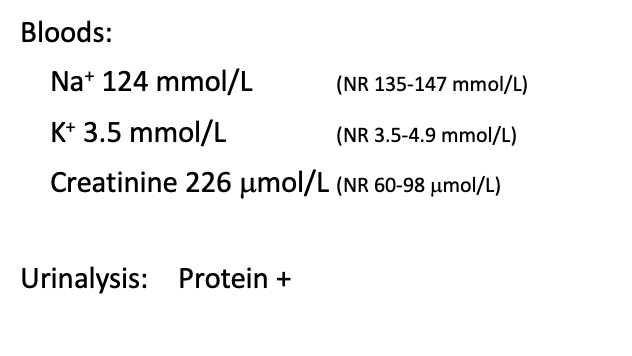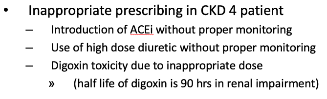 patient with moderate but stable CKD, In hospital he was given 2 x 500g loading doses of Digoxin then 250g per day, Furosemide 240mg/day and Ramipril 5mg od