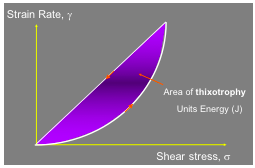 The extent of thixotrophy is defined by the the area between these 2 lines (known as the area of hysteresis)