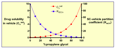 Explain the effect of Propylene Glycol (a co-solvent) on a very lipophillic drug?