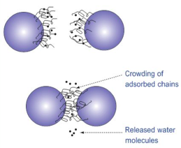Stabilised by repulsive forces due to absorption of macromolecules or surfactants to their surfaces
