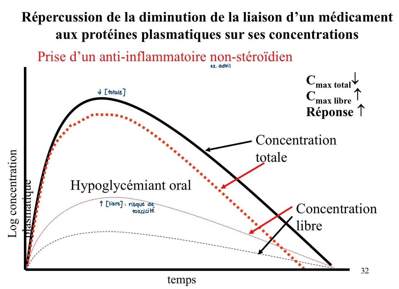 Le médicament libre dans le sang est en équilibre avec le médicament fixé aux protéines plasmatiques et avec le médicament dans les tissus.