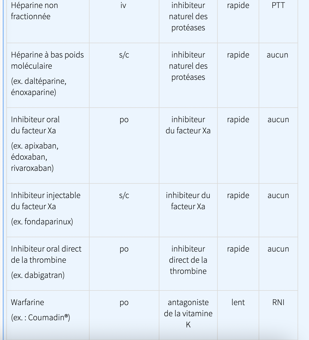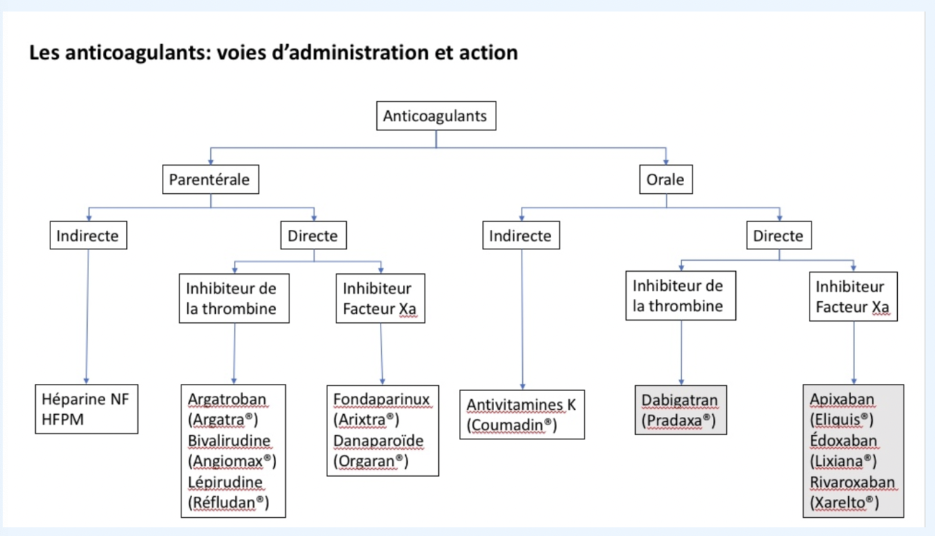 Différentes classes d’anticoagulants: Inhibiteur INJECTABLE du facteur Xa