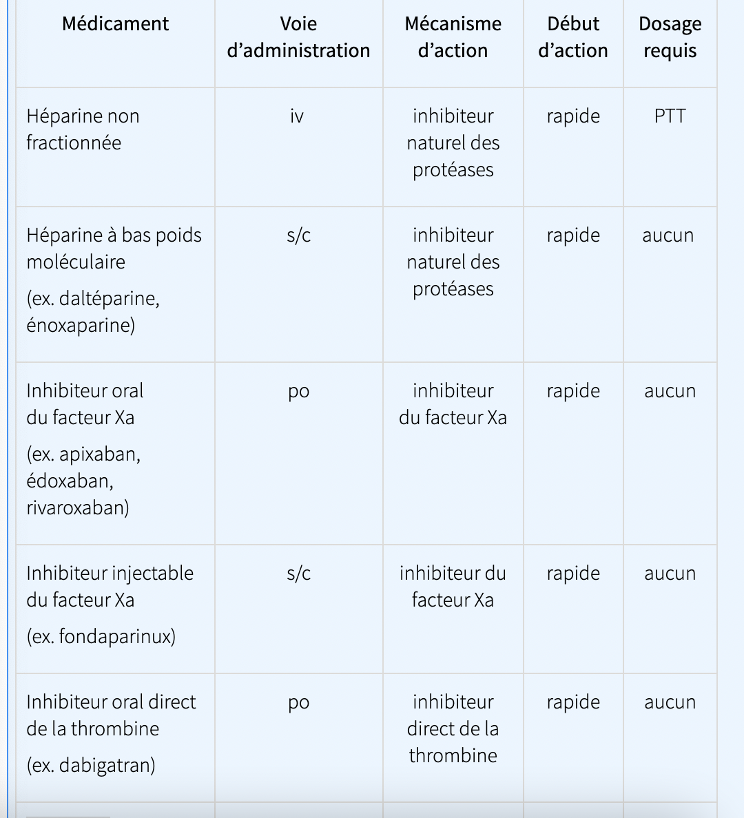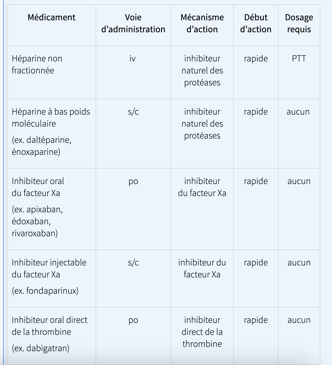 Il existe plusieurs options thérapeutiques pour l’ANTICOAGULATION. L’héparine de faible poids moléculaire (ou de bas poids moléculaire) est une bonne option pour l’anticoagulation initiale. Il existe quatre HBPM commercialisées présentement au Canada:
