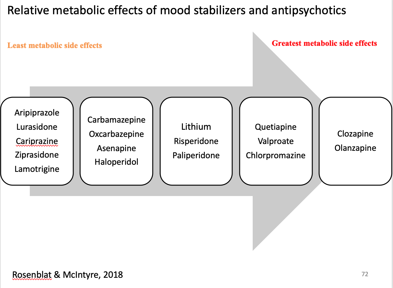 Nommez des stabilisateurs de l’humeur et antipsychotiques qui ont un meilleur profil d’effet secondaire métabolique (5)