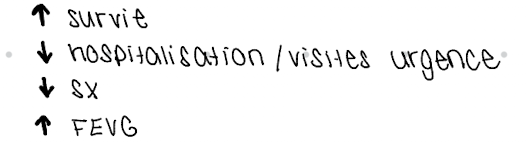 En ICFEr, introduire les 4 piliers rapidement, vers les doses cibles dans les 3-6 mois suivant diagnostic. On devrait idéalement optimiser qqch q 2 sem.