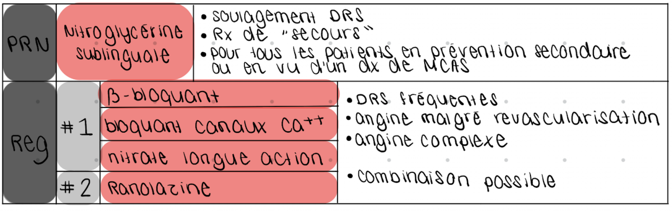 PRN : nitroglycérine sublinguale