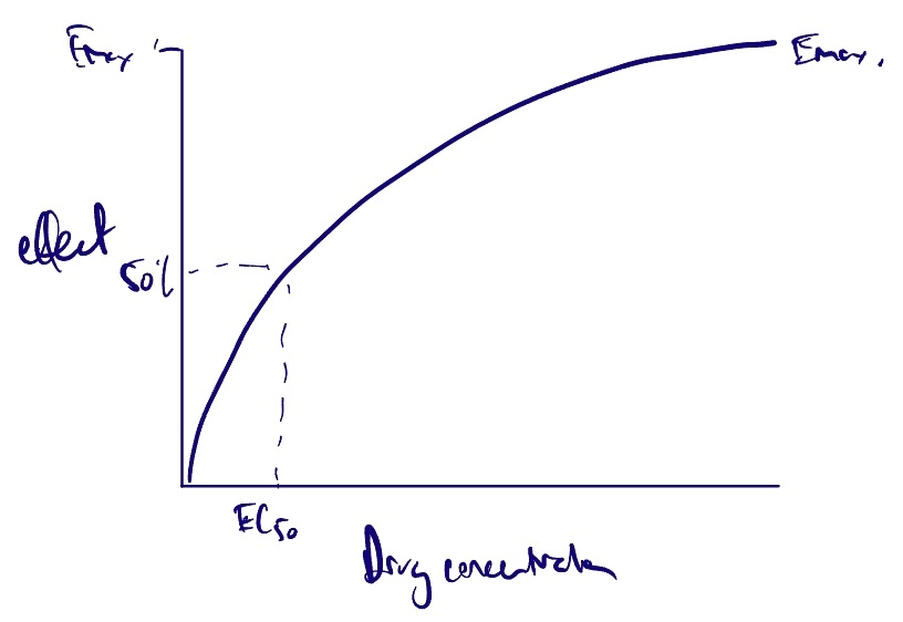 EC50 = concentration of the drug that produces 50% of maximum effect