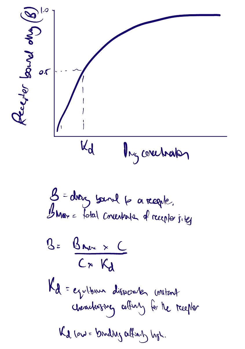 Kd - affinity of receptors for binding the drug