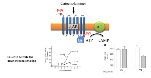 Modified signalling in the Arg389Gly Beta 1 receptor