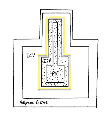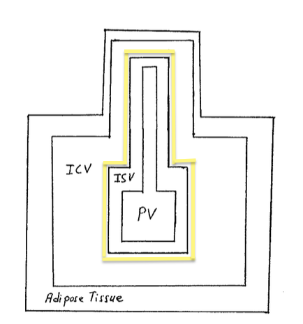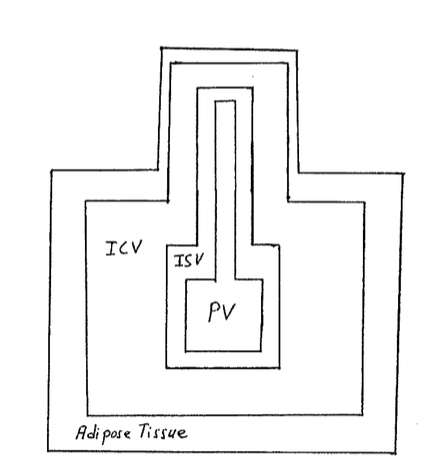 The human body is schematically represented in the following figure. shown are the plasma volume (PV), interstitial Volume (ISV), intracellular volume (ICV), and fat adipose tissue.