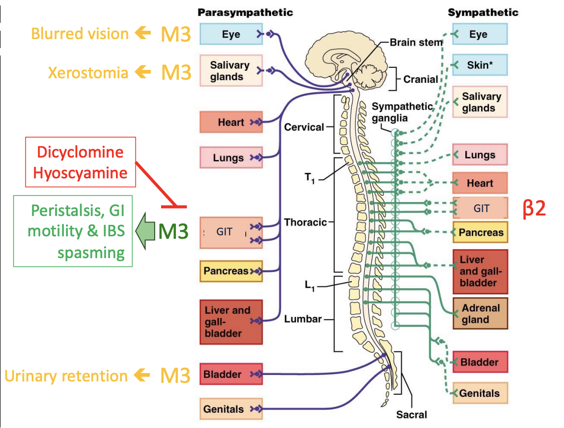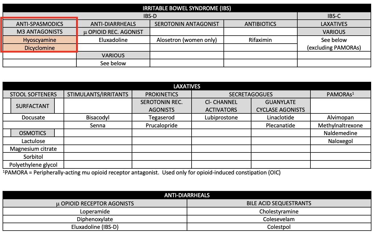 Diclycomine and Hyoscyamine work by antagonizing M3 receptors