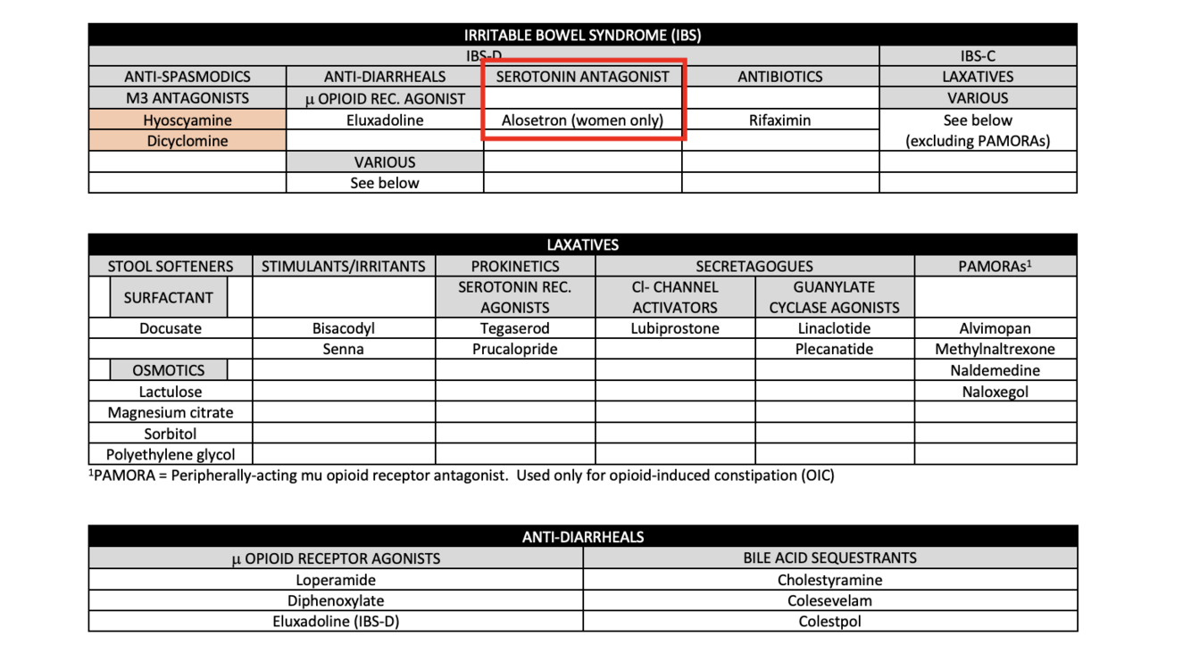 Alosetron is a serotonin antagonist that can be used to treat IBS-D in women