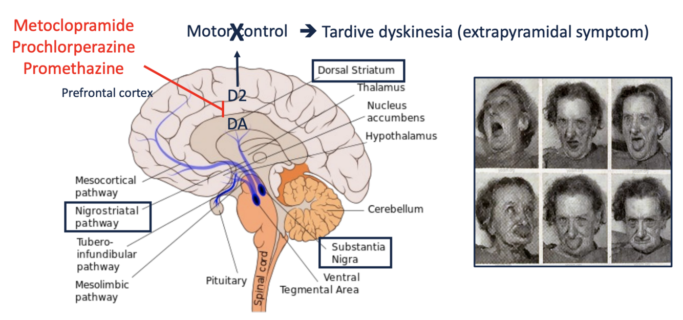 Metoclopramide is an anti-emetic which blocks dopamine receptors
