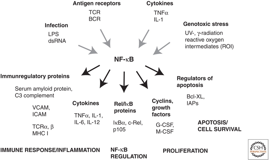 What are stimuli and target genes for NF-kB?