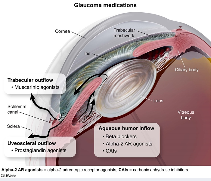 Which 3 classes of drugs act on the ciliary epithelium to decrease aqueous humor secretion and can be used for glaucoma?