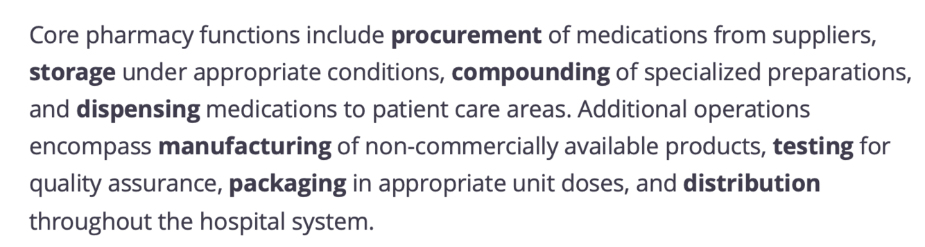Core pharmacy functions include what