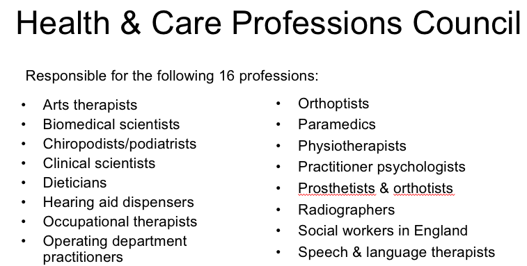 The council responsible for 16 different proffesions, such as physios/paramedics/radiographers