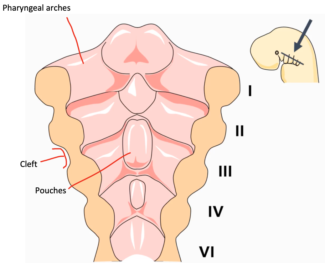 End of week ? the ?, ? and ?pharyngeal grooves and ?? disappear giving a ??