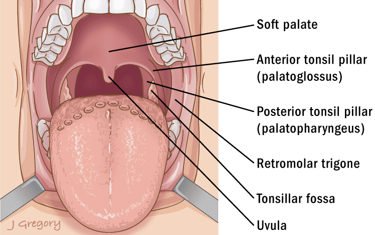 Medial Surface: 10-15 Orifices leading to Tonsillar Crypts