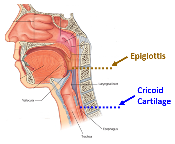 Inferior: 6th Cervical Vertebra opposite lower border of Cricoid Cartilage
