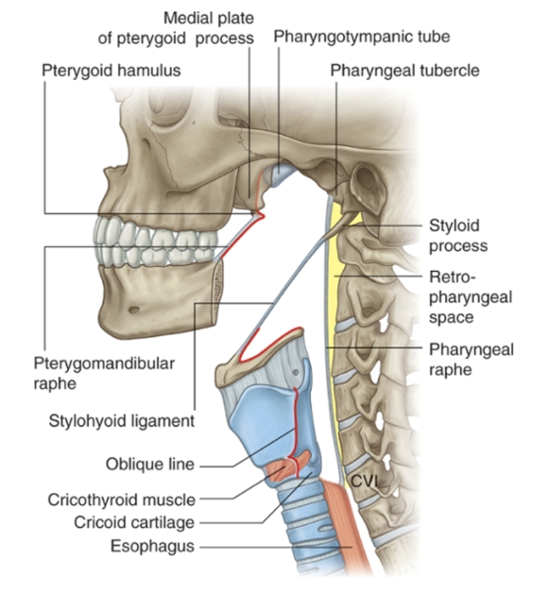 Anterior verticle line of attachment for the lateral pharyngeal walls