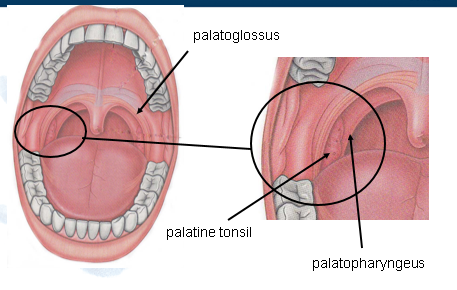 Palatoglossus, palatine tonsil and palatopharyngeus