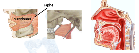 Lower part (posterior) medial pterygoid plate, hamulus, pterygomandibular ligament, mandible, side of tongue