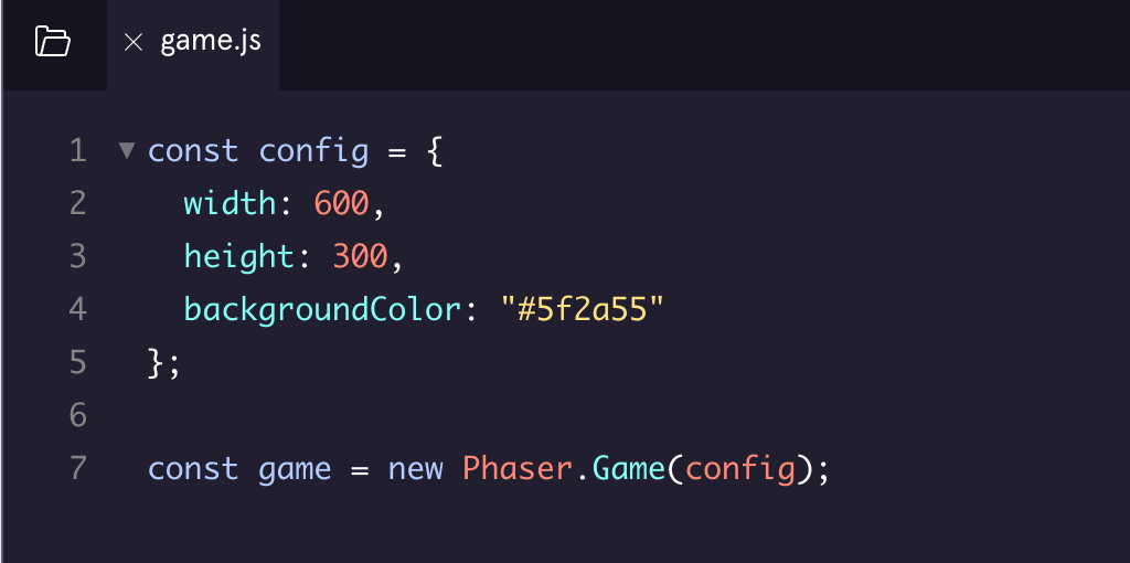 In order to make games of our own design, we call Phaser.Game() with an object that specifies some meta-information about the game. We define that object beforehand and conventionally name the variable config. Here are some of the keys we can define in a config: