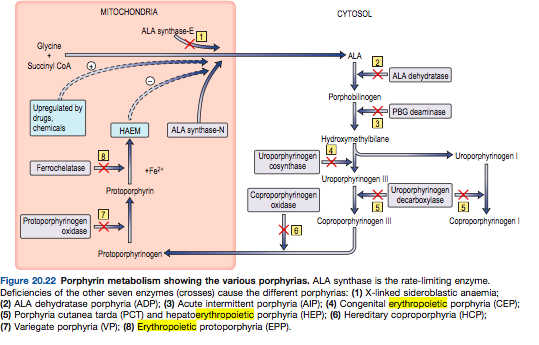 Caused by abnormalities of enzymes involved in the biosynthesis of haem, resulting in overproduction of the intermediate compounds called ‘porphyrins.’