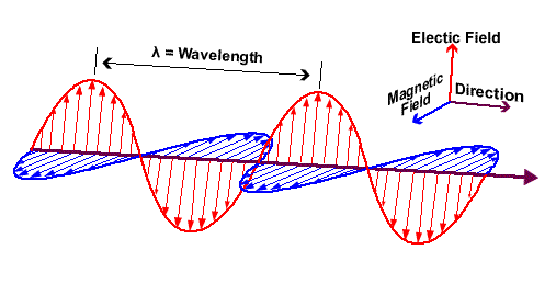 Electromagnetic waves are emitted as short bursts of waves, each burst leaving the source in a different direction. Each burst is a packet of electromagnetic waves and is referred to as a photon.