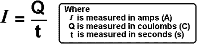 The amount of charge (Q) that flows past a point in a given amount of time (t)
