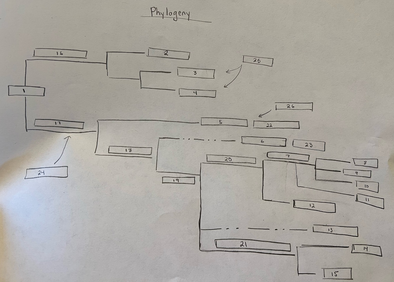 Phylogenetic tree/diagram based on the hypotheses about evolutionary relationships