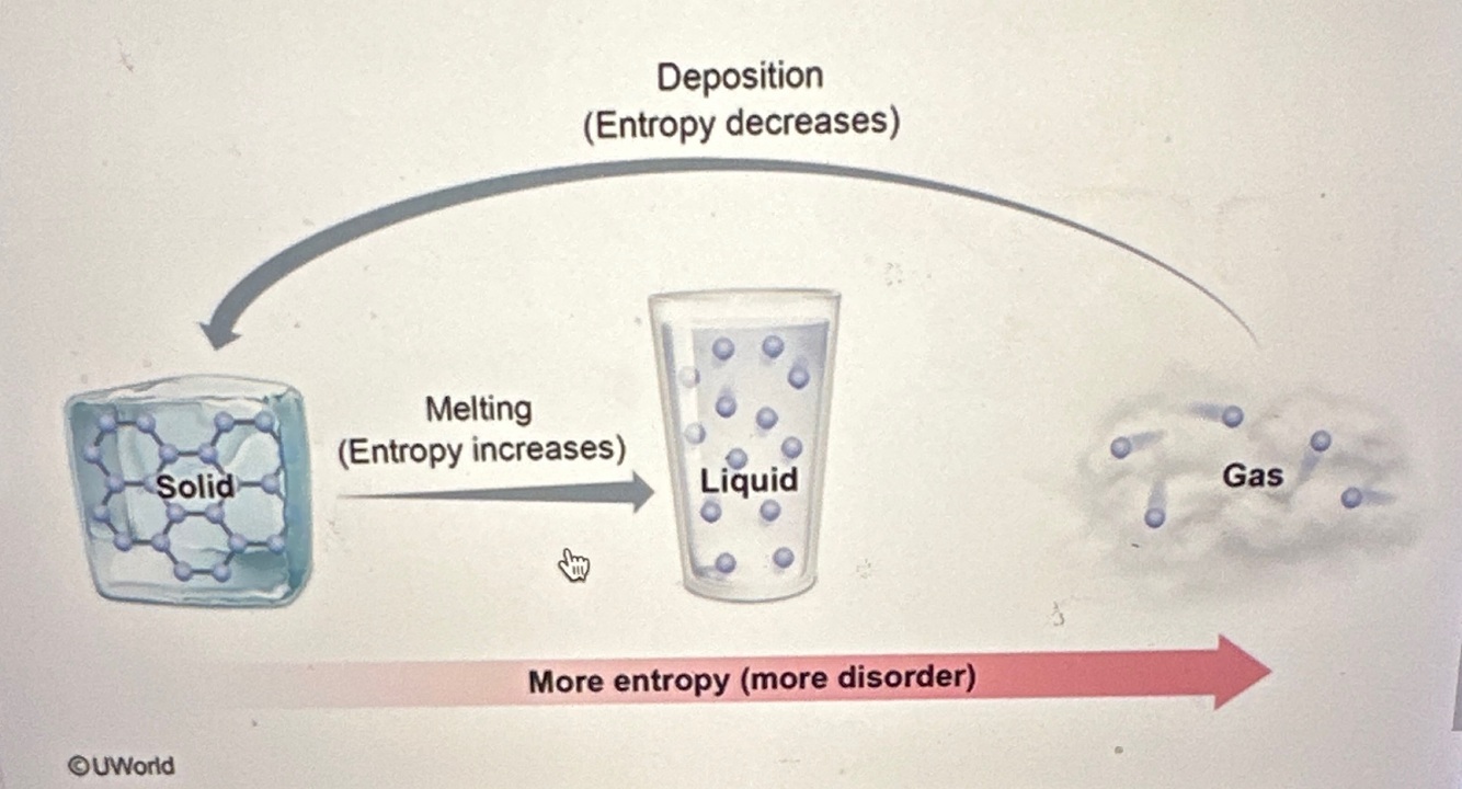 Measures the disorder of a substance or system ( solids have the lowest then liquid then gas)