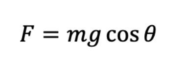 Formula for the force of gravity acting on an object perpendicular to an inclined plane.