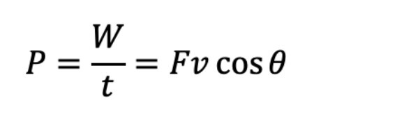 Formula Used to determine the power of an application of force when work and time elapsed are known, or when the applied force and speed of displacement are known.