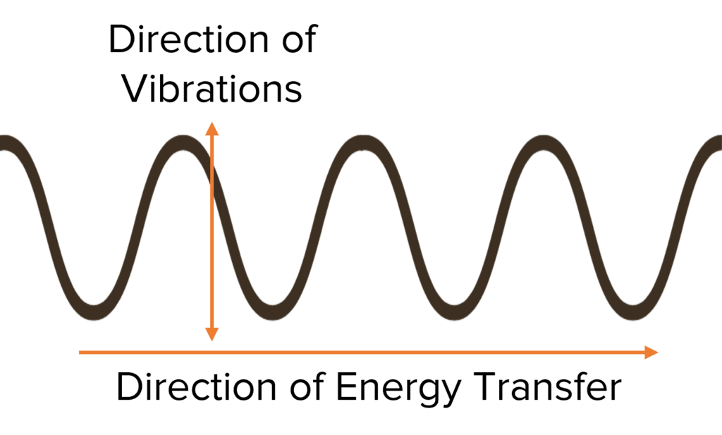 In transverse waves, the vibrations of the particles are perpendicular to the direction of energy transfer.