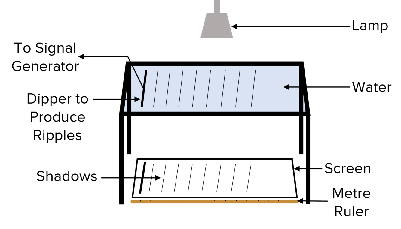 Using the meter ruler, measure the distance between the shadows of the waves on the screen.