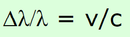 Change in wavelenght over original wavelength equals velocity (of the movement) over the speed of the electromagnetic wave (c)