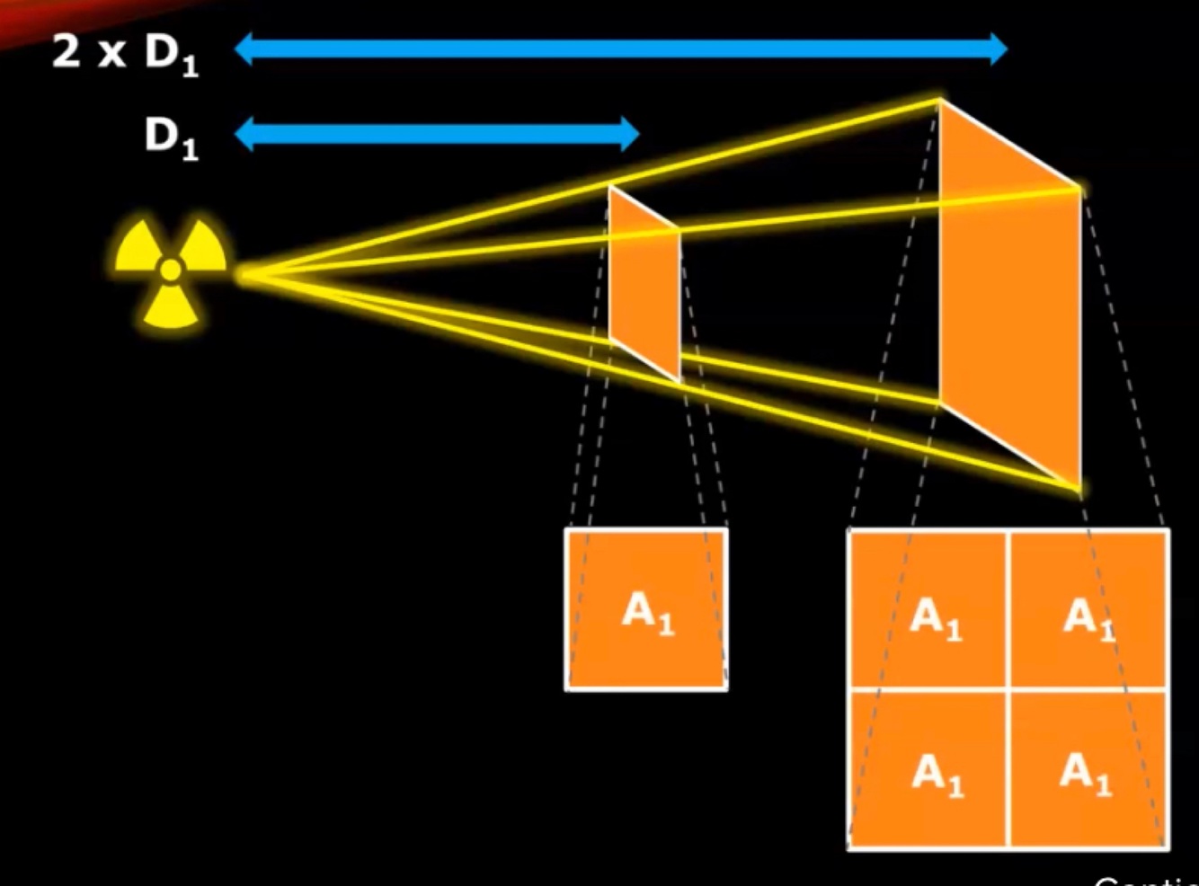 1 gray / 4 = 0.25g (as quarter every double distance)