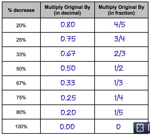 To decrease a value by the percentages listed below, you would