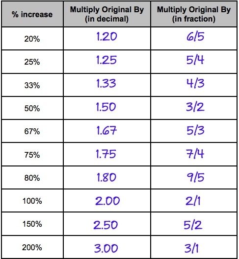 To raise a value by the percentages listed below, you would