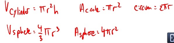 What are the areas and volume formulas for spheres and cylinders?