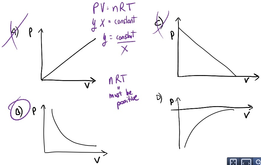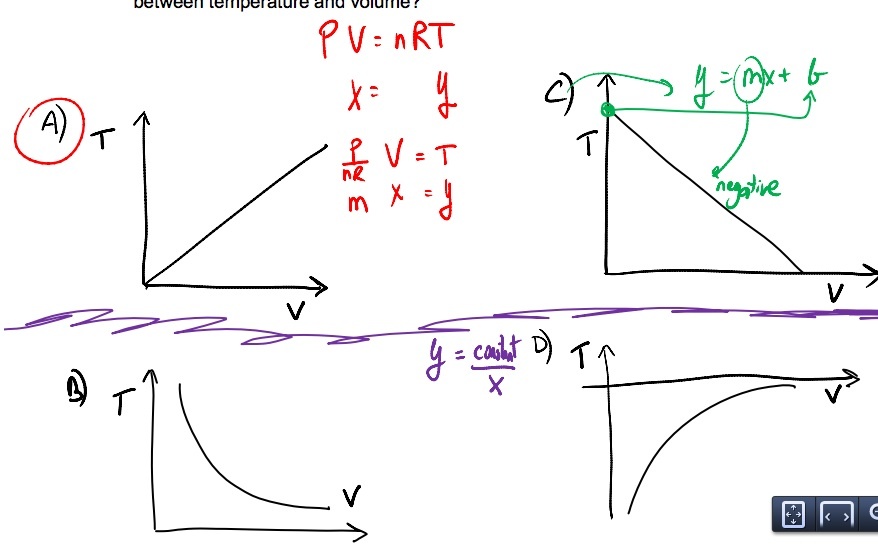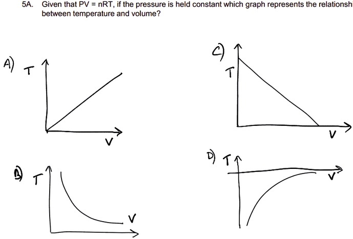 Given that PV = nRT, if the pressure is held constant what graph represents the relationship between temperature and volume?