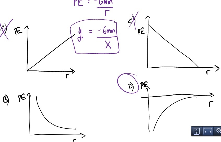 Given that PE = -Gmm/r, which of the following graphs represents the relationship between PE and r?
