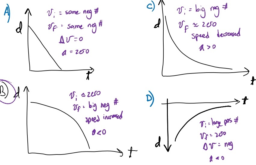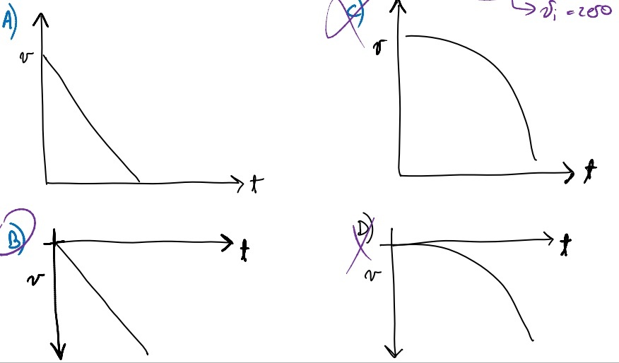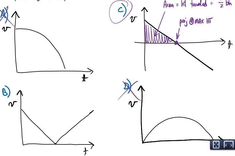 Which of the following graphs correctly depicts vy vs t for a projectile thrown vertically upward?