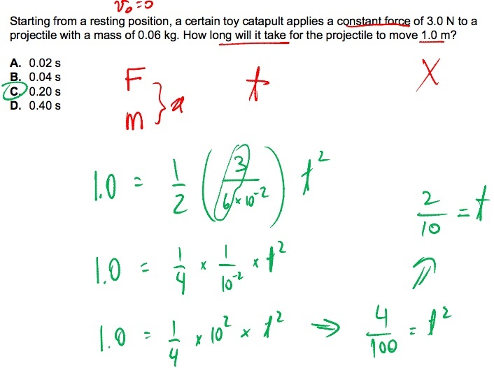 a projectile with a mass of 0.06 kg. How long will it take for the projectile to move 1.0 m?