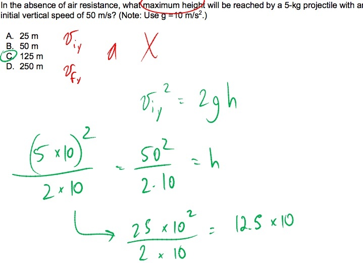 projectile with an initial vertical speed of 50 m/s? (Note: Use g =10 m/s2.)