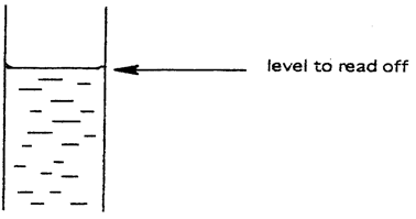 To read volumes of liquids ACCURATELY, it is essential to read the volume with the eye in line with….