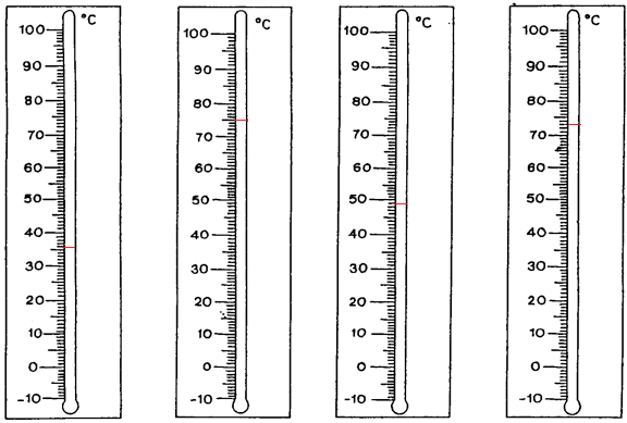 Where are the following temperatures on the blank thermometer?