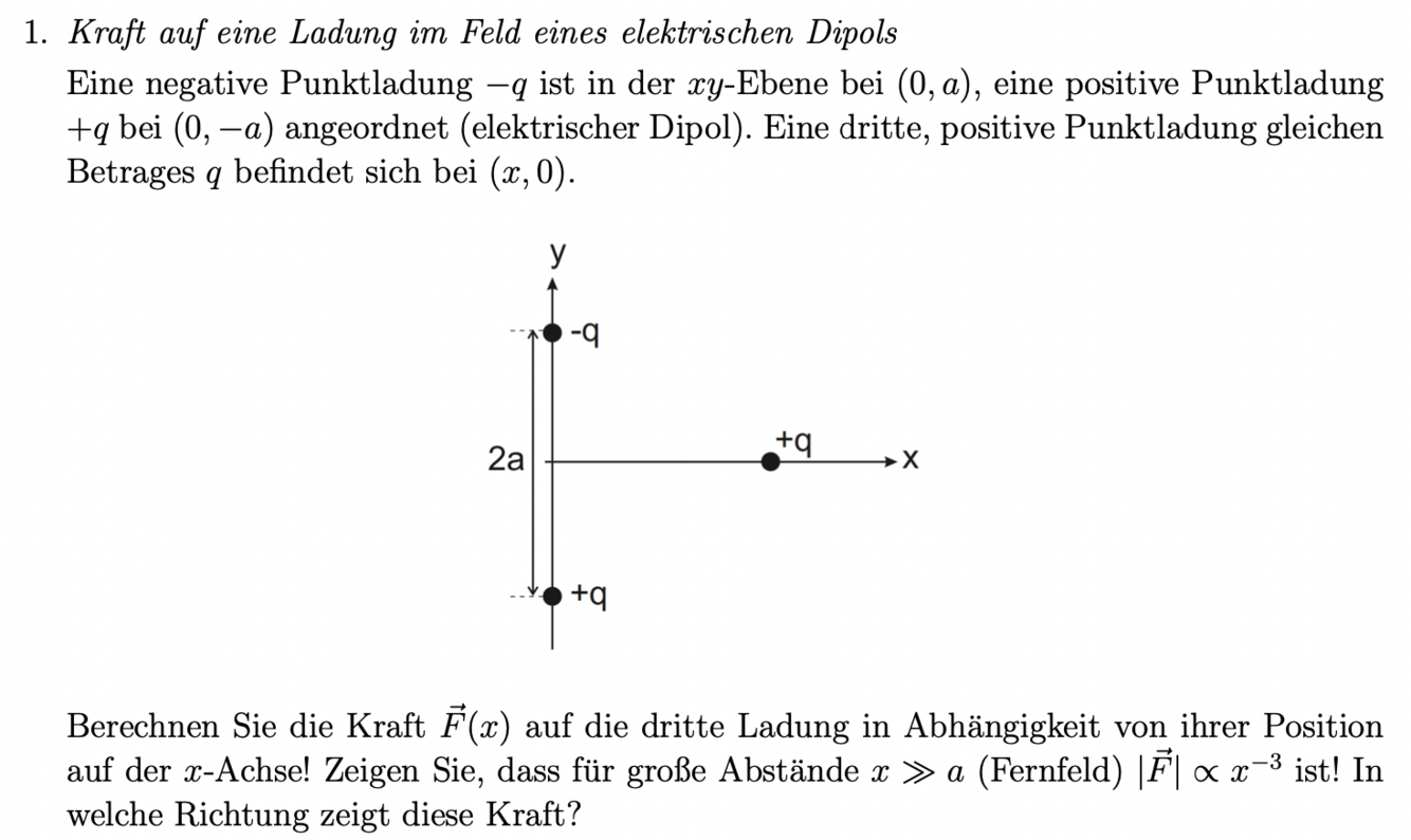 SS 23: Blatt 2 - Aufgabe 1: Kraft auf eine Ladung im Feld eines elektrischen Dipols